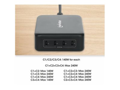 Manhattan - Netzteil - GaN - Wechselstrom 100-240 V - 240 Watt - Ausgangsanschlüsse: 4 - Schwarz
