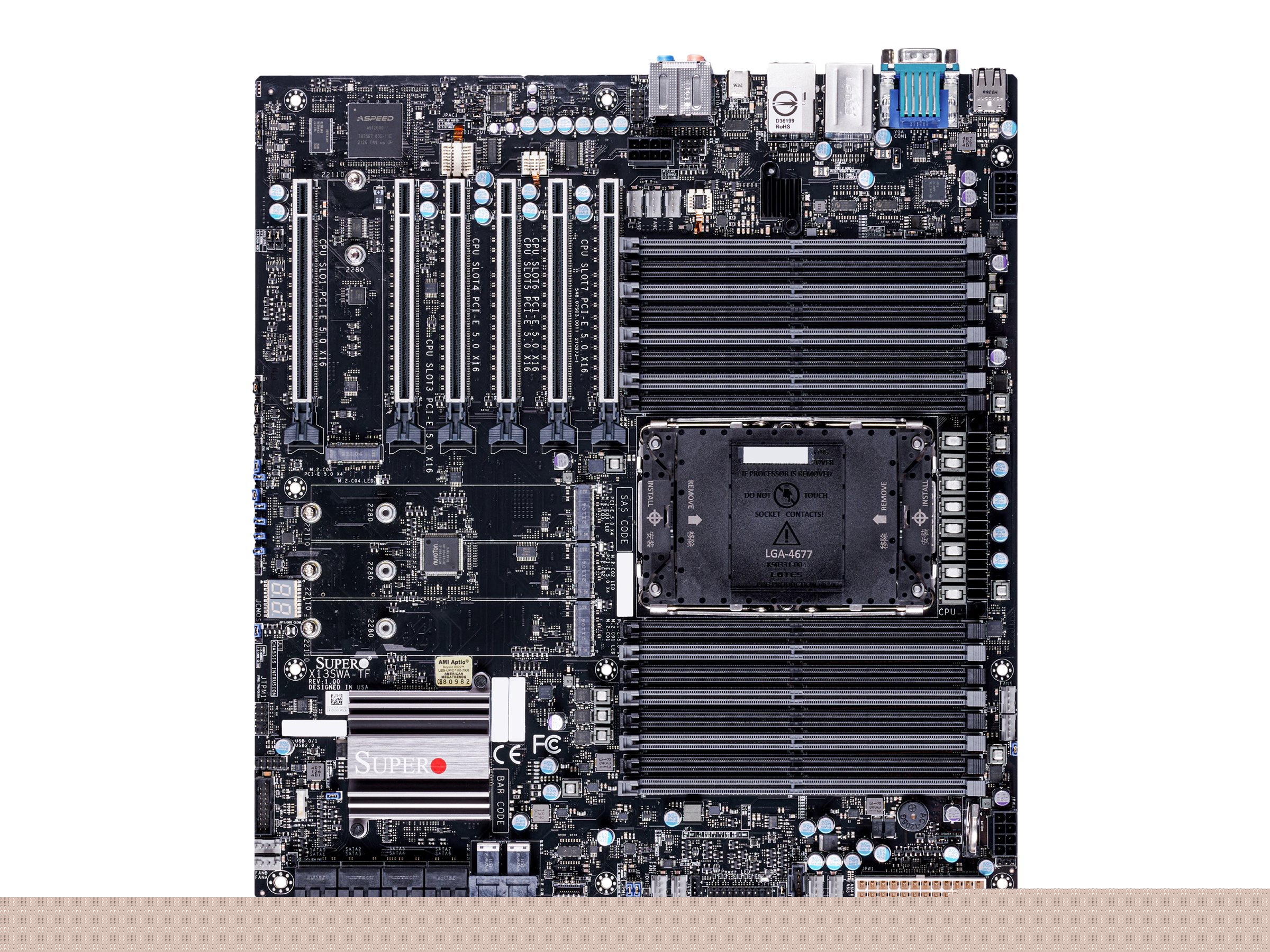 SUPERMICRO X13SWA-TF - Motherboard - E-ATX - LGA4677 Socket-E - W790 Chipsatz - USB 3.2 Gen 1, USB-C 3.2 Gen 2x2, USB 3.1 Gen 2, USB 3.2 Gen 2x2 - 10 Gigabit LAN, Gigabit LAN - Onboard-Grafik - 8-Kanal-Audio
